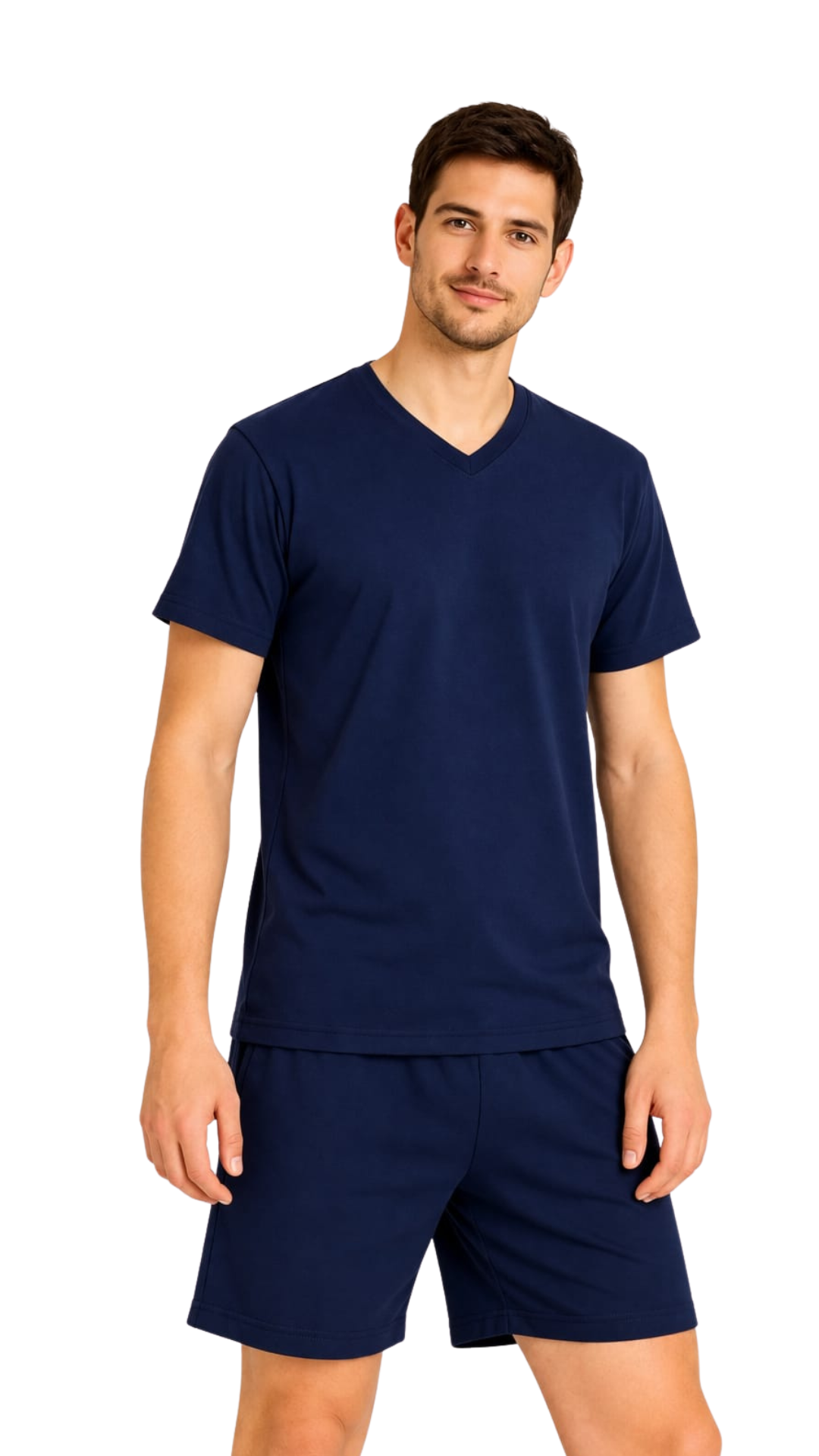 Ref. 9002 Pijama masculino curto liso - azul marinho
